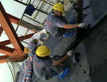 吉林修明维保服务有限公司员工在做复合润滑涂层,跨江大桥鞍体鞍座润滑工程系统,公路大桥鞍座与座体间自润滑减磨结构,技术方案:钛晶核处理技术,二硫化钼自润滑减磨涂覆技术,超润滑石墨希氟油涂覆技术,高强二硫化钼合金珠分布技术,抗高极压二硫化钼油脂技术,五种技术优势的叠加形成的复合涂层。